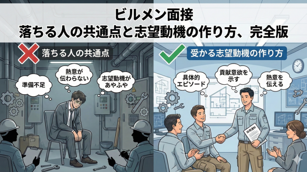【完全版】ビルメン面接で落ちる人の共通点と、3社3勝した志望動機の作り方【未経験・30代40代OK】
